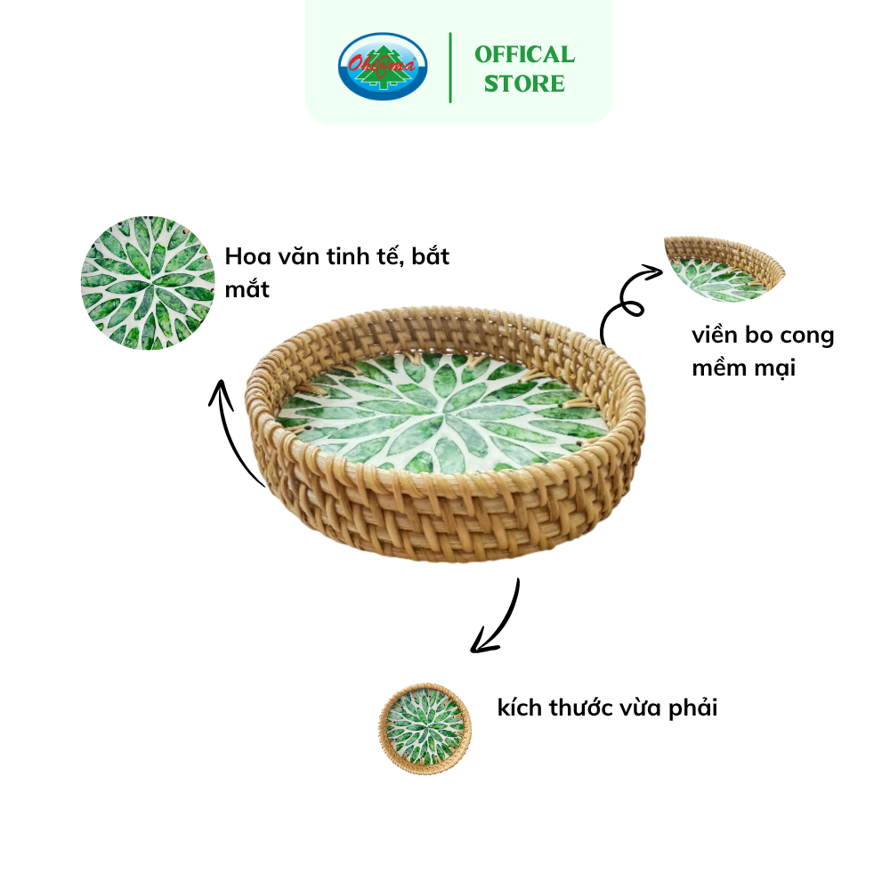 Khay Tròn Mây Đan Tre Khảm Trai Ohi@ma Round Bamboo Weave Tray | Tray Đựng Hoa Quả Đồ Ăn, Trang Trí