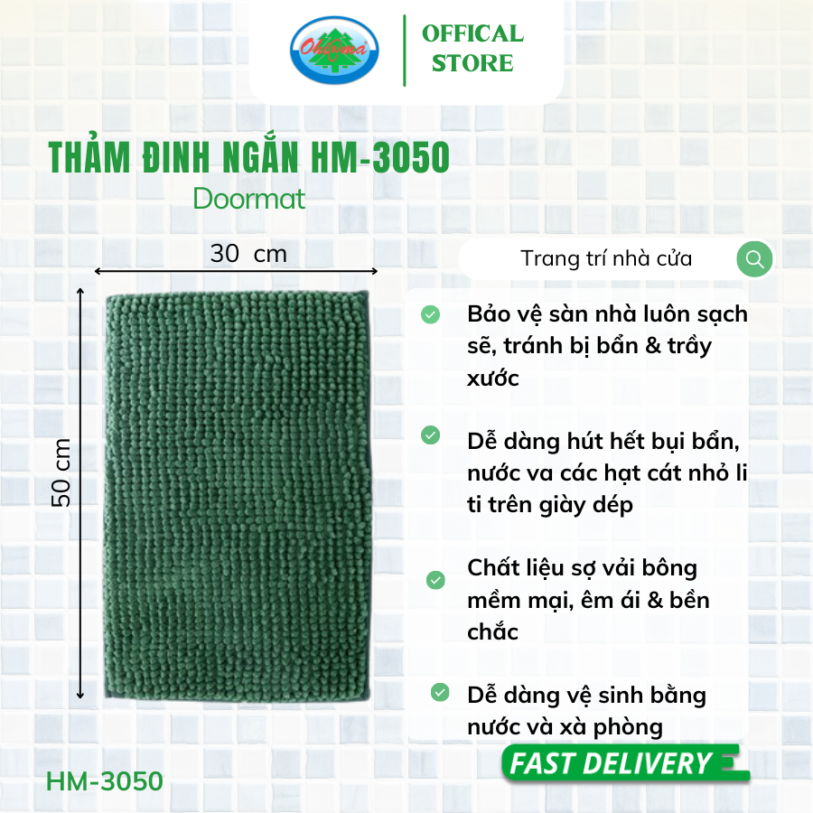 Thảm Đinh Ngắn Chùi Chân, Thấm Nước Vải Bông Ohiama Doormat HM-3050 (Giao Màu Ngẫu Nhiên)